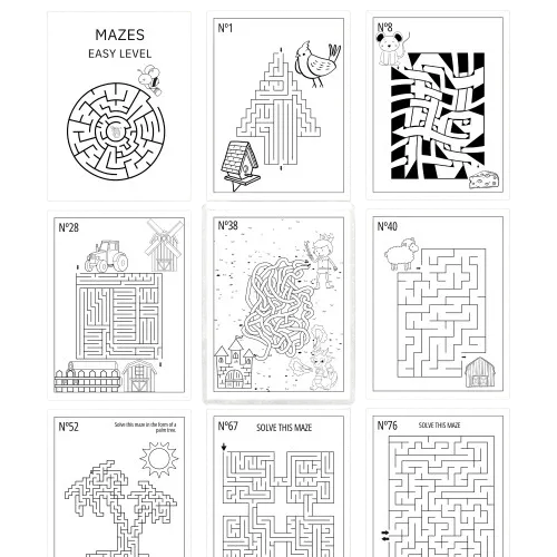 أنشطة تعليمية ممتعة أكثر من 10 ألغاز ممتعة، ومتاهات مع حلول، ومجموعة التعرف على الأشكال
