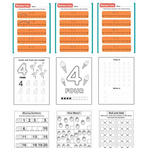 أسس الأرقام والرياضيات تتبع الأرقام من 1-10، وأوراق ممارسة الأرقام، ومواد الرياضيات الأساسية